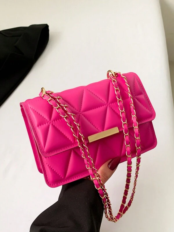 Fashion Solid Color Flap Pressed Texture Chain Crossbody Mini Bag
