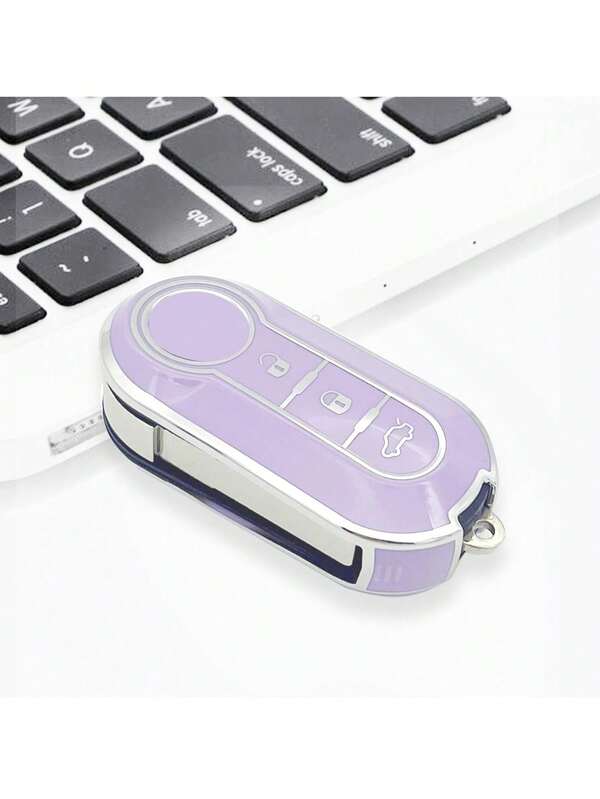 Fashionable & Cute Cyber Teddy Bear Toy With Movable Limbs + Creative & Personalized Purple Rhinestone Car Keychain + Purple Anti-Drop Car Key Protective Cover For Fiat 500/Panda/Stiio/Brava/Boliett/Lingyue/Iveco Daily