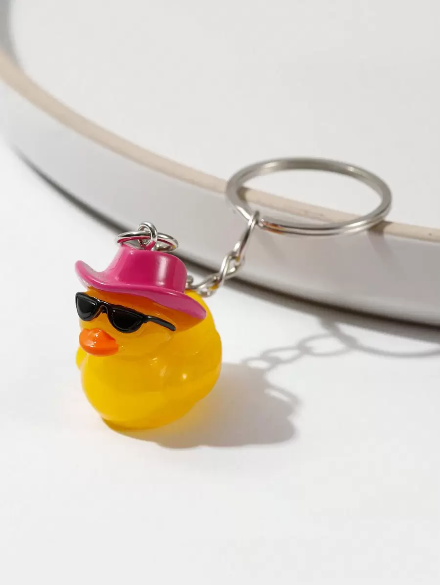 Fashionable & Lovely Multicolor Duck Shaped Keychain/bag Charm With Hat And Sunglasses, Suitable For Daily Use