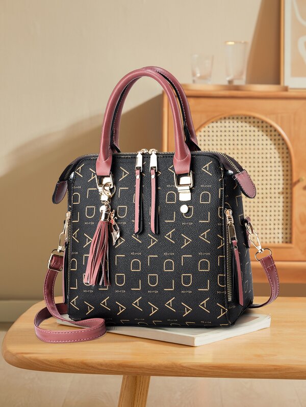 Fashionable Ald Letter Print Handbag With Accessories, Great Gift For Mom