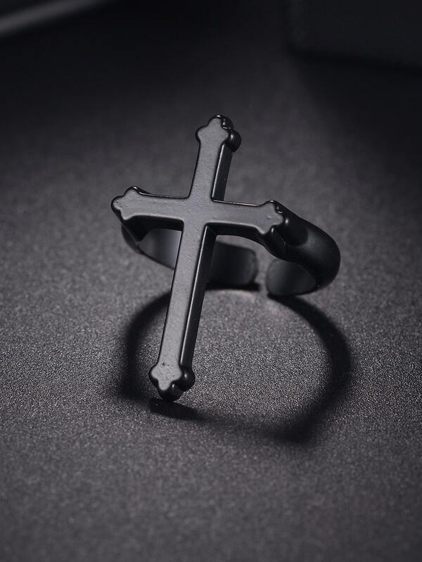 Fashionable And Popular Men's Alloy Cross Decor Cuff Ring For Jewelry Gift And For A Stylish Look