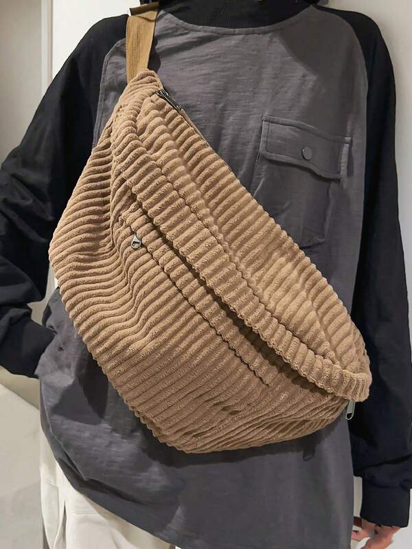 Fashionable And Simple Large Capacity Corduroy Chest Bag/Waist Bag/Shoulder Bag, Suitable For Commuting, Studying, Business Trip, Travel, Etc. Fanny Pack Sling Bag School Bag Valentines Gift For Men