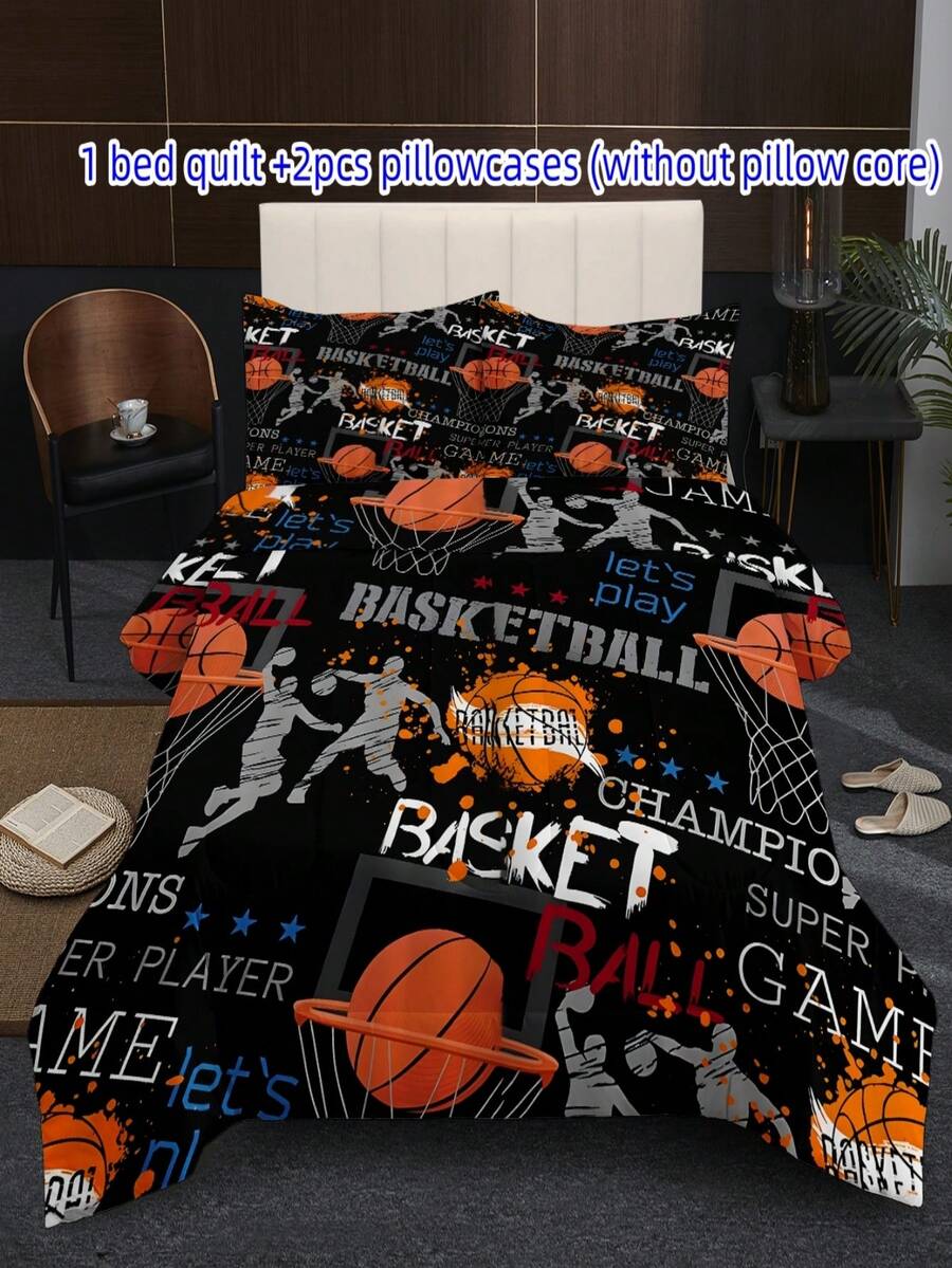 Fashionable Basketball And Handle With Digital Print Bedding Set, 3pcs (Duvet Cover And Pillowcase)