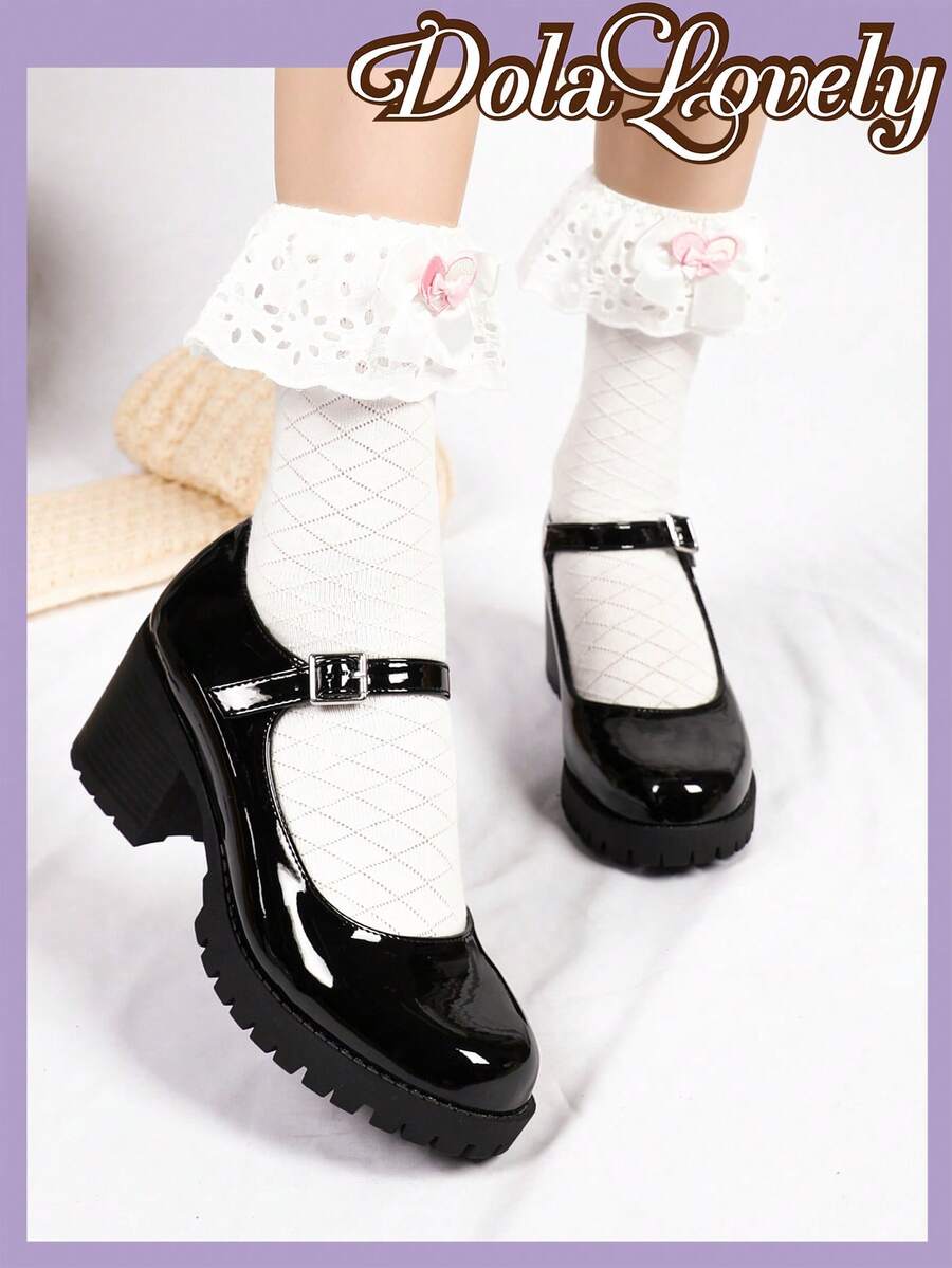 Dola Lovely Fashionable Girls' Black Mary Jane Shoes, Spring/summer Style, Princess Style New Arrival