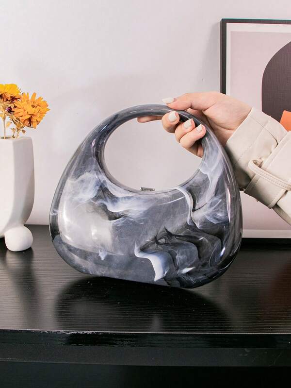 Fashionable Gradient Tie Dye Design Circular Dinner Bag With Ring & Crescent Decor, Can Be Handheld Or Crossbody, With Multi-Use Metallic Chain Shoulder Strap, For Parties And Events
