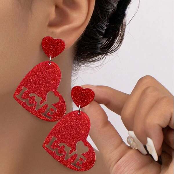 Fashionable Heart Shaped Elegant Acrylic Love Earrings For Valentine's Day