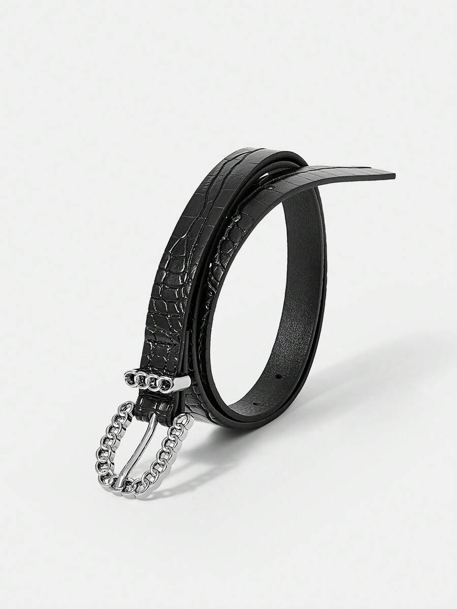 SHEIN BIZwear Fashionable Hollow Out Link Buckle Exquisite All-Match Snake Pattern Black Leather Belt For Women