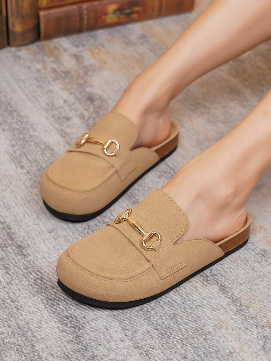 Fashionable Ladies' Khaki Car Line Decor, Super Soft Wood Chip-like Texture, Cap Toe Flat Shoes
