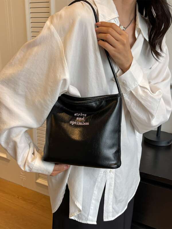 Fashionable New Design Large Capacity Single Shoulder Bag With Letter Embroidery