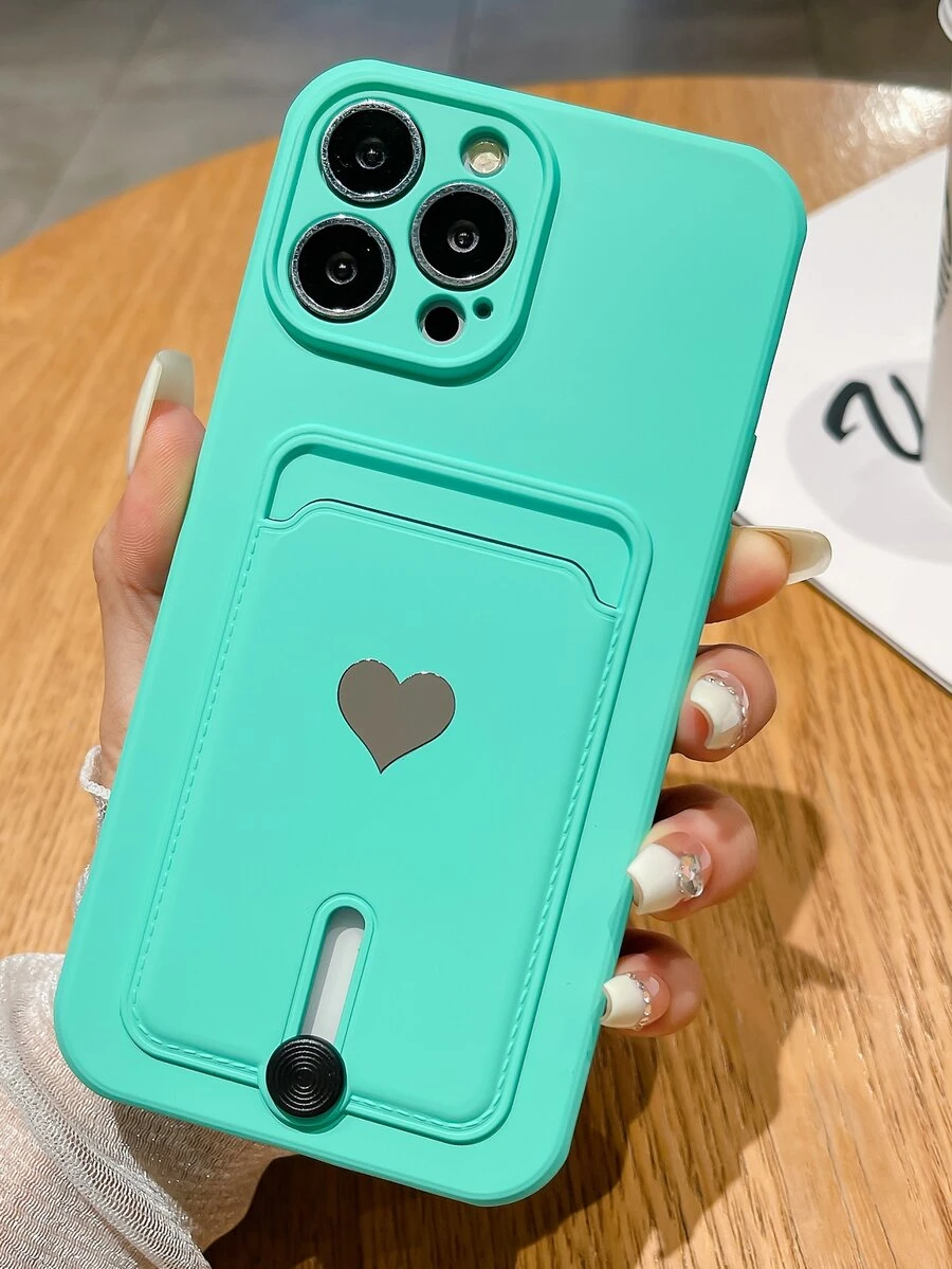 Fashionable New Spray Painting & Card Insertion & Heart Decor & Tpu Shockproof Phone Case, Rose Gold