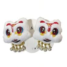 1pair Trendy Red Lion Dance Inspired Hair Clips With Cute Design And Embroidered Edges For Girls' Hanfu Hairstyle Embellishment, Chinese New Year Accessory