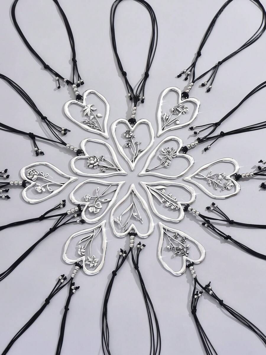 Fashionable Vintage Dramatic Large Heart Shaped Hollowed-Out Flower Design 12 Constellation Birth Flower Pendant Necklace, Great For Daily Wear And Parties, As Friendship Gift