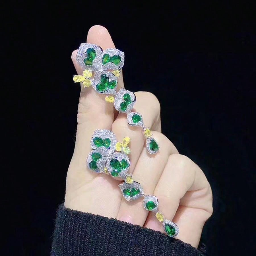 Fashionable Women'S Long Stud Earrings/ Dangle Earrings With 925 Silver Needle And Inlaid