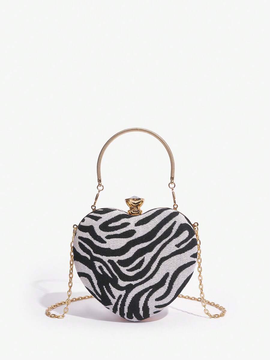 SHEIN SXY Fashionable Zebra Pattern Heart Detail Top Handle Women Handbag, Shoulder Bag