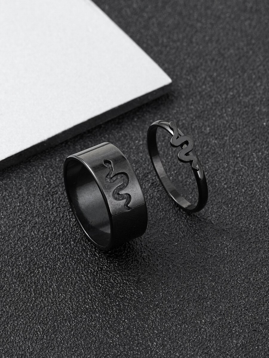 Fashionable and Popular 2pcs Men Snake Decor Ring, Stainless Steel Jewelry Goth Punk Jewelry for Jewelry Gift and for a Stylish Look