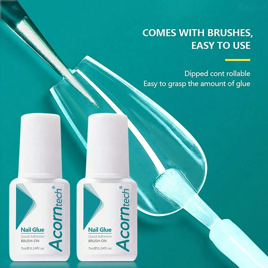 Fast Drying And Adhesive Nail Glue For Quick Attachment, 2 Bottles 7ml With Brush, Suitable For Nail Art Beginners