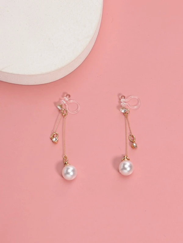 Faux Pearl Decor Clip On Earrings