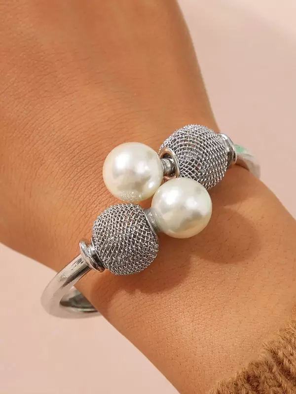 Faux Pearl Decor Cuff Bangle