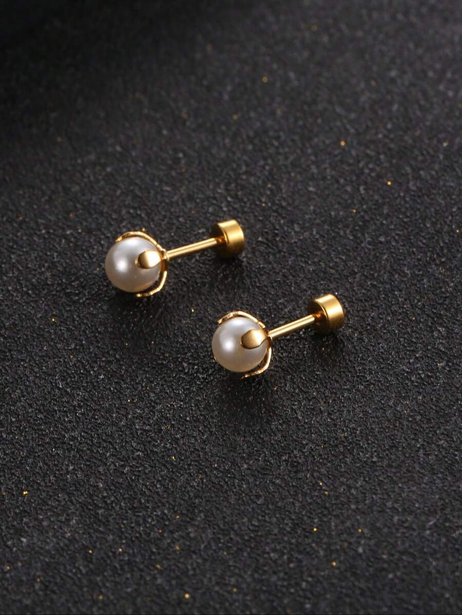 Faux Pearl Decor Stud Earrings