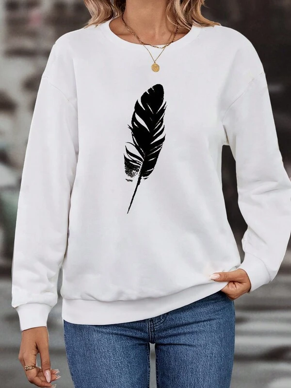 Feather Print Drop Shoulder Sweatshirt