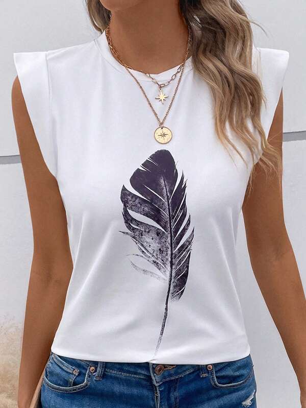 SHEIN LUNE Feather Print Tee