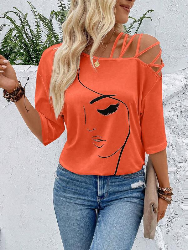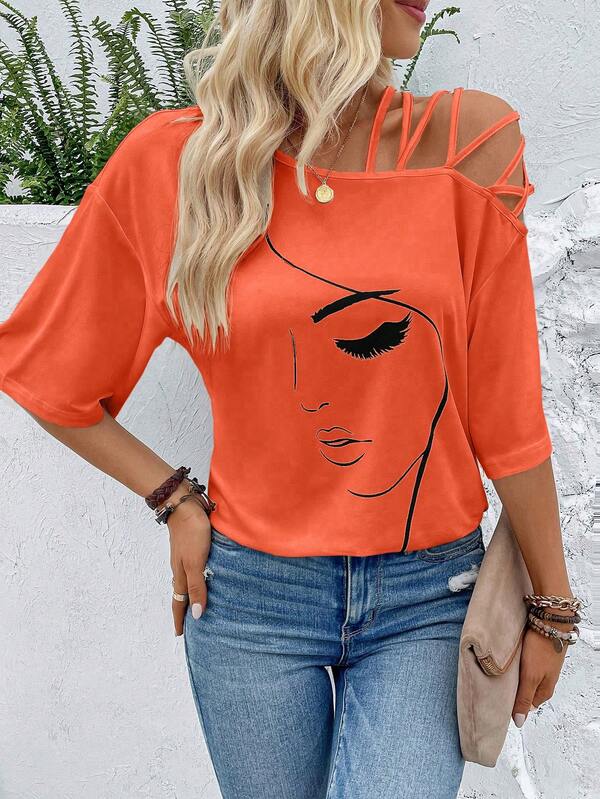 SHEIN VCAY Figure Graphic Asymmetrical Neck Tee