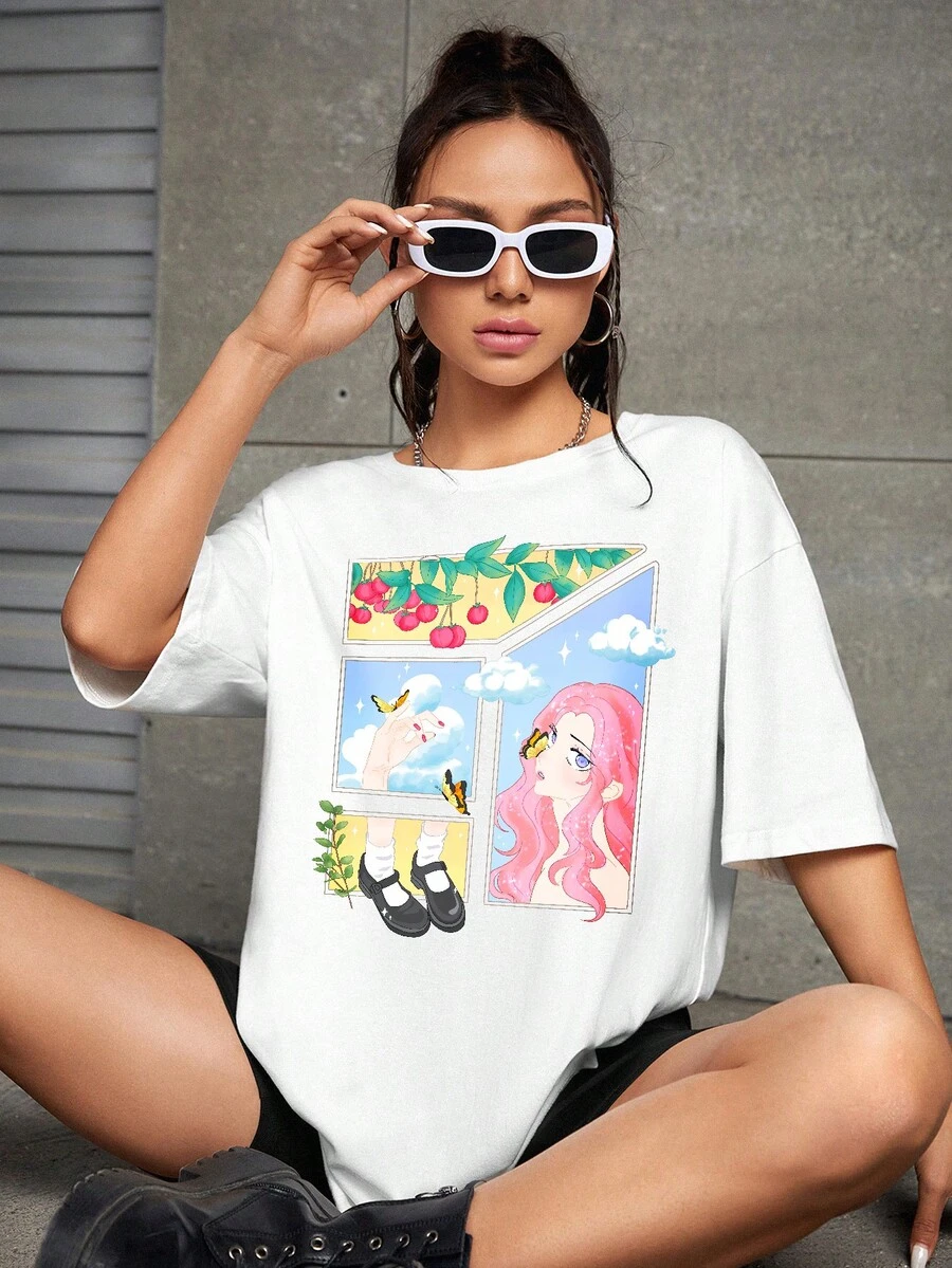 Junebeari Figure Graphic Drop Shoulder Oversize Tee