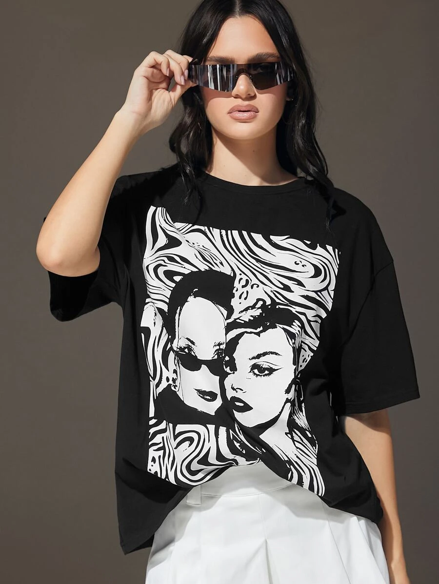 SHEIN Coolane Figure Graphic Drop Shoulder Tee
