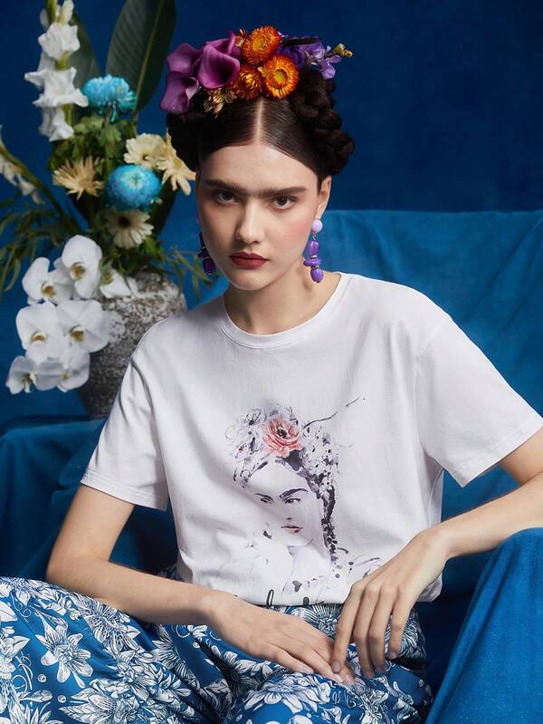 Frida Kahlo X SHEIN X Designer FURNANDA Figure Graphic Drop Shoulder Tee