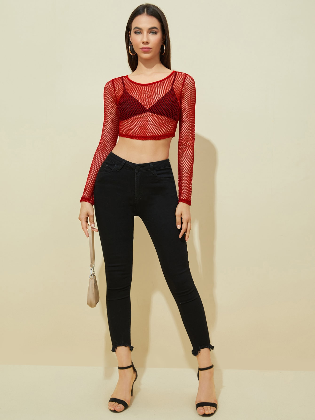 SHEIN Privé Fishing Net Crop Top Without Bra