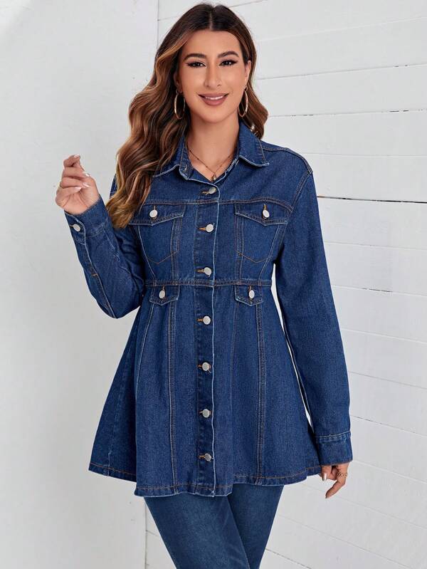 EMERY ROSE Flap Pocket Button Front Denim Coat