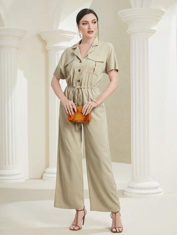 SHEIN Mulvari Flap Pocket Button Front Shirt Jumpsuit