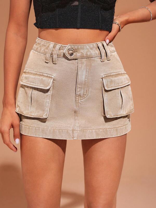 SHEIN BAE Flap Pocket Denim Skirt