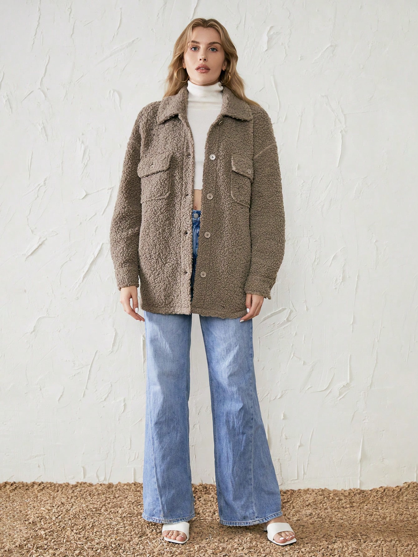 Anewsta Flap Pocket Drop Shoulder Teddy Coat