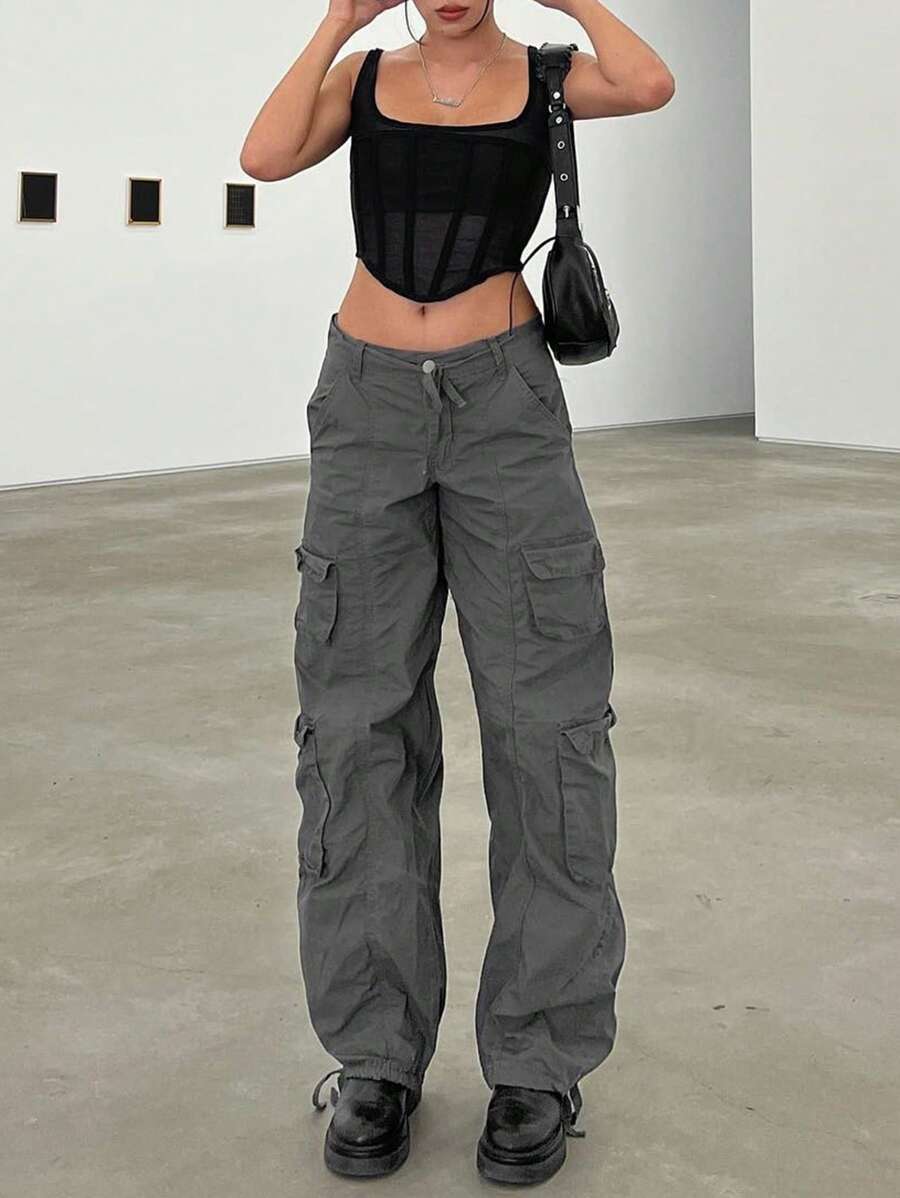 Flap Pocket Side Drawstring Hem Cargo Pants