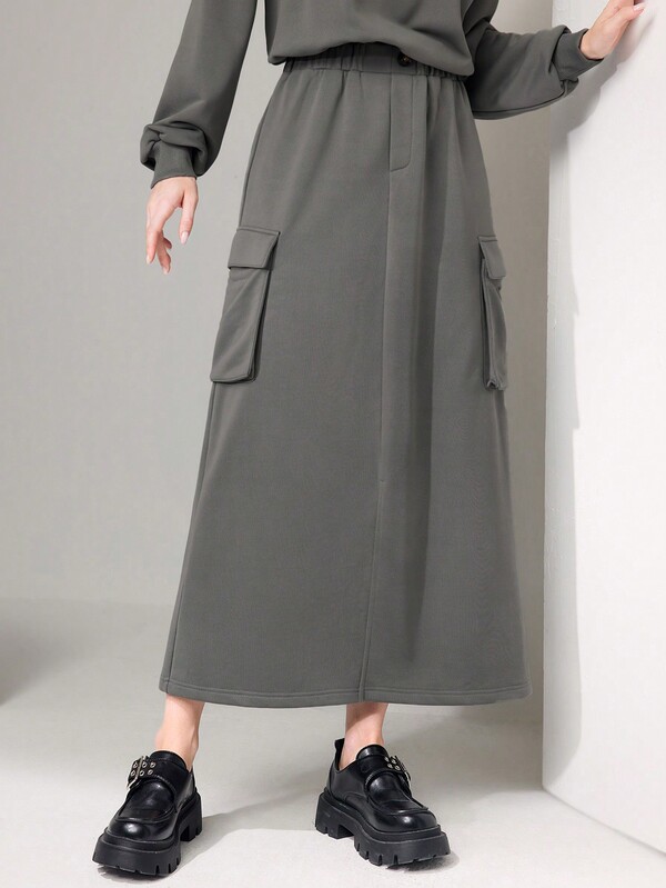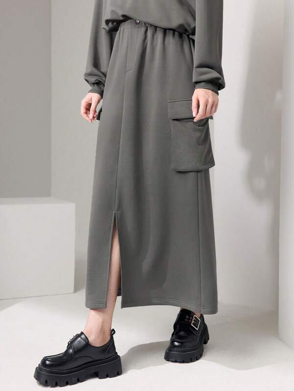 SHEIN Mulvari Flap Pocket Split Hem Skirt