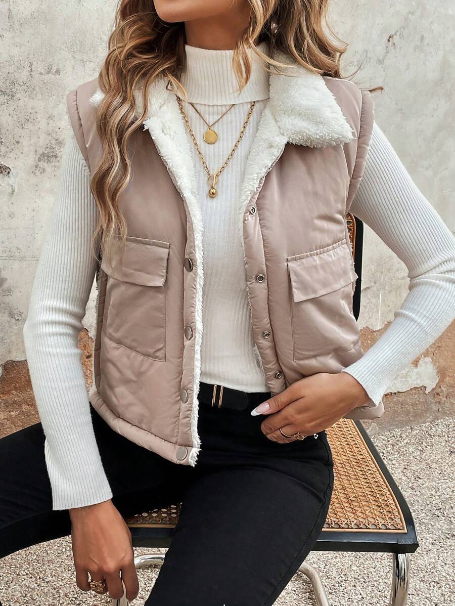 SHEIN Essnce Flap Pocket Teddy Lined Vest Coat
