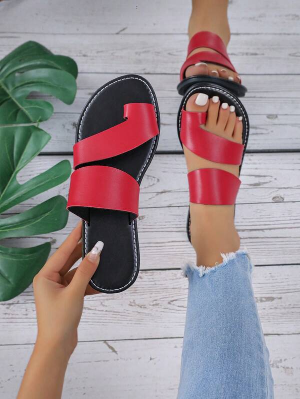 Flat Slippers With Minimalist Toe Ring Design, Slip-on Sandals