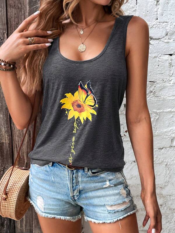 SHEIN LUNE Floral & Slogan Graphic Tank Top
