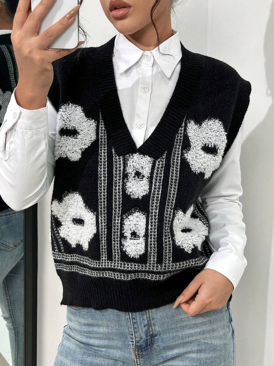 Floral & Striped Pattern Sweater Vest Without Blouse
