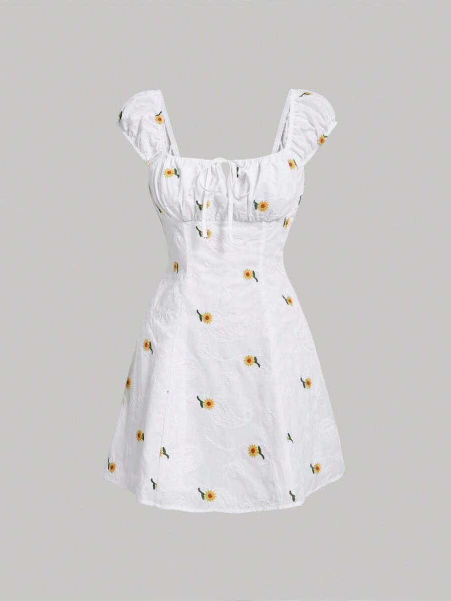 SHEIN MOD Floral Embroidery Ruched Bust Dress