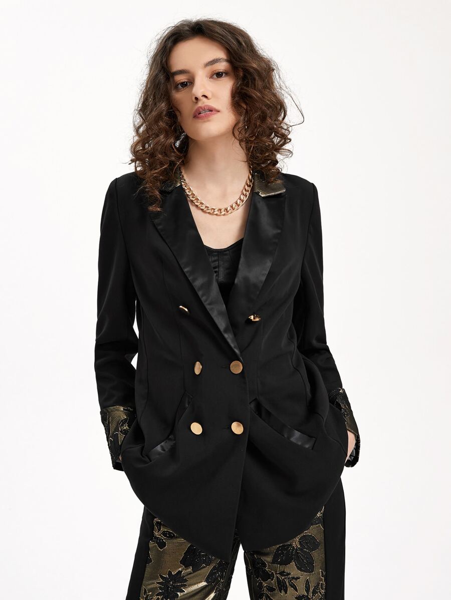 TSUN SHUIN Floral Jacquard Cuffs Double Breasted Blazer