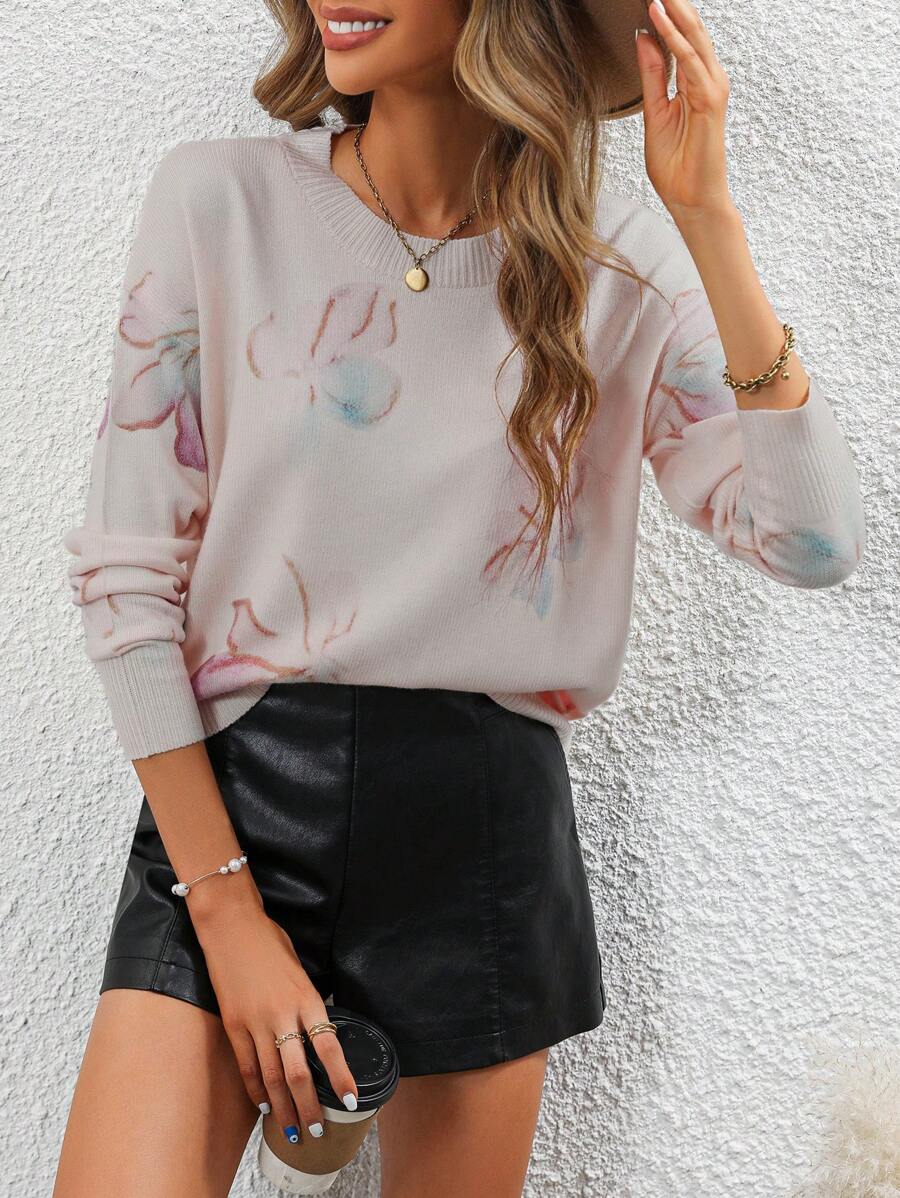 SHEIN LUNE Floral Pattern Drop Shoulder Sweater