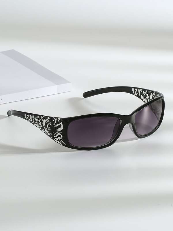 Floral Pattern Rhinestone Decor Fashion Glasses