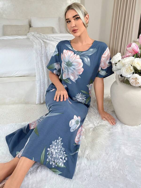 Floral Print Batwing Sleeve Nightdress