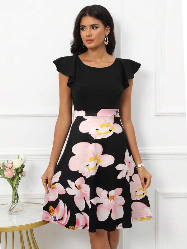 Floral Print Butterfly Sleeve Dress