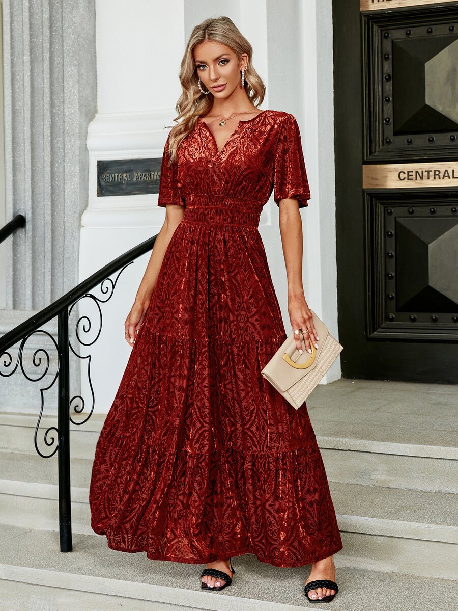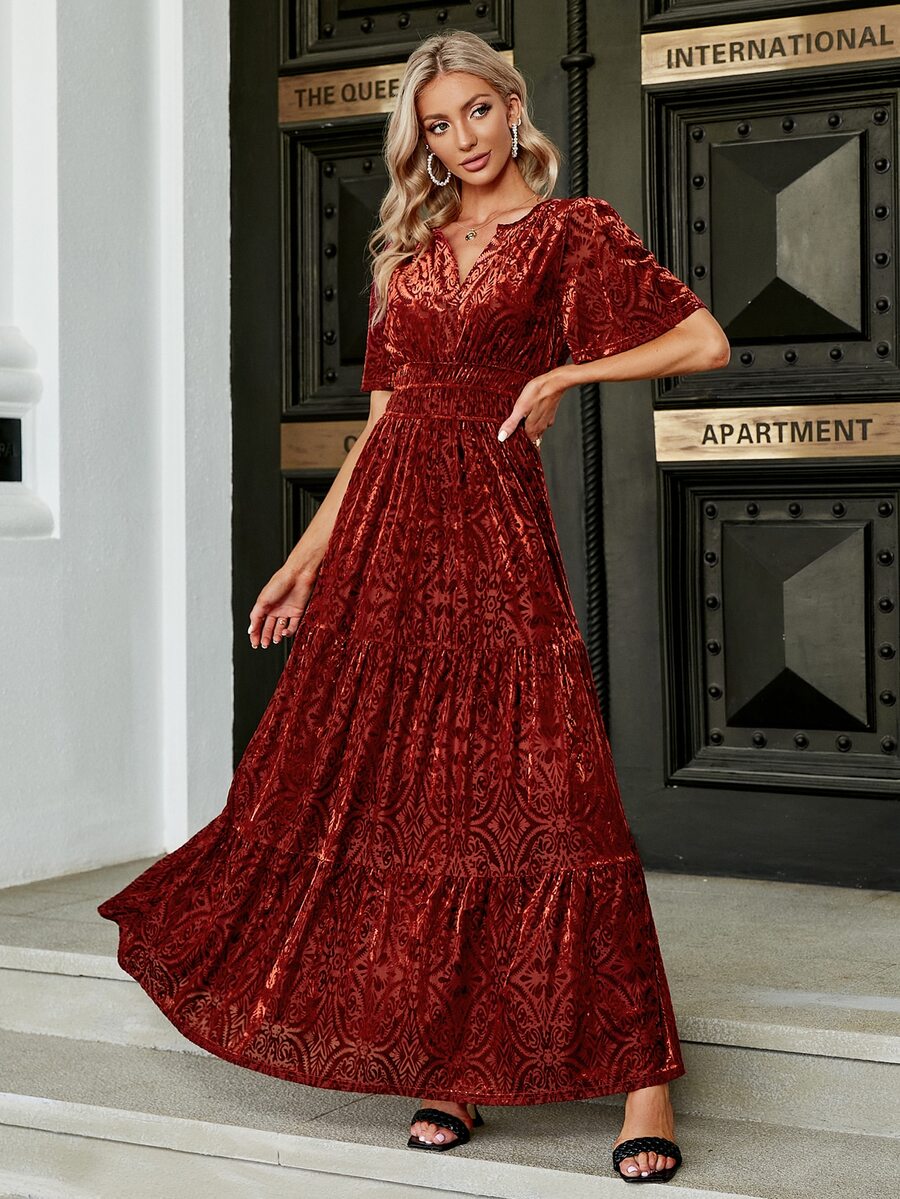 Simplee Floral Print Flutter Sleeve Ruffle Hem Dress