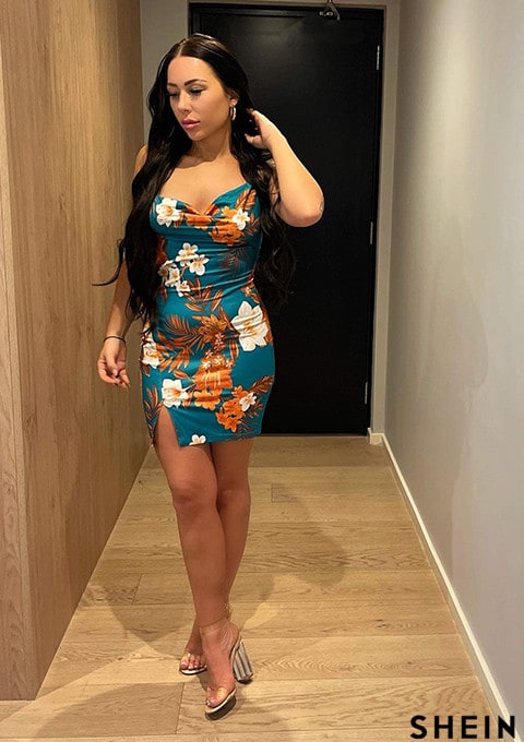 SHEIN Privé Floral Print One Shoulder Split Hem Dress