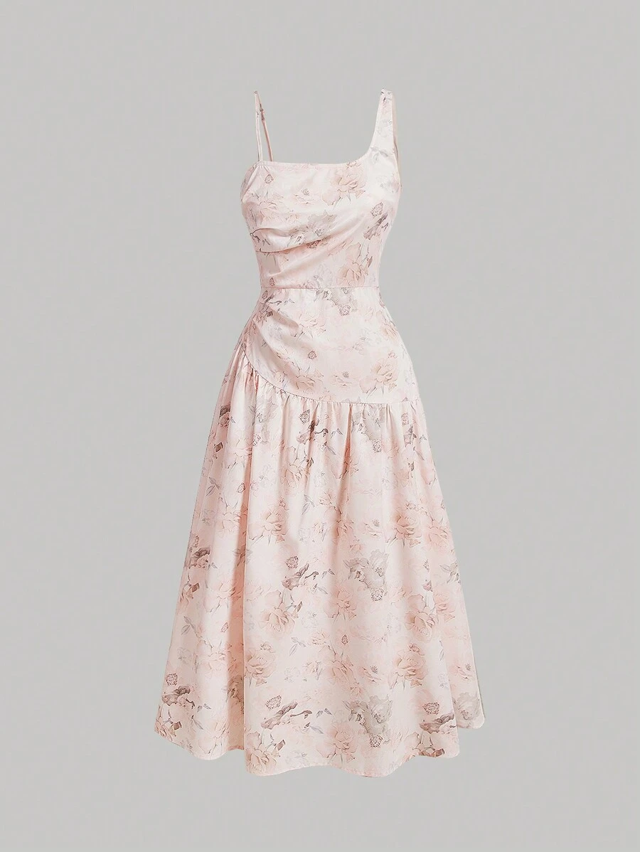 SHEIN MOD Floral Print Ruffle Hem Dress Without Tee