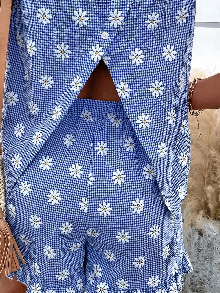 SHEIN LUNE Floral Print Ruffle Trim Top & Shorts